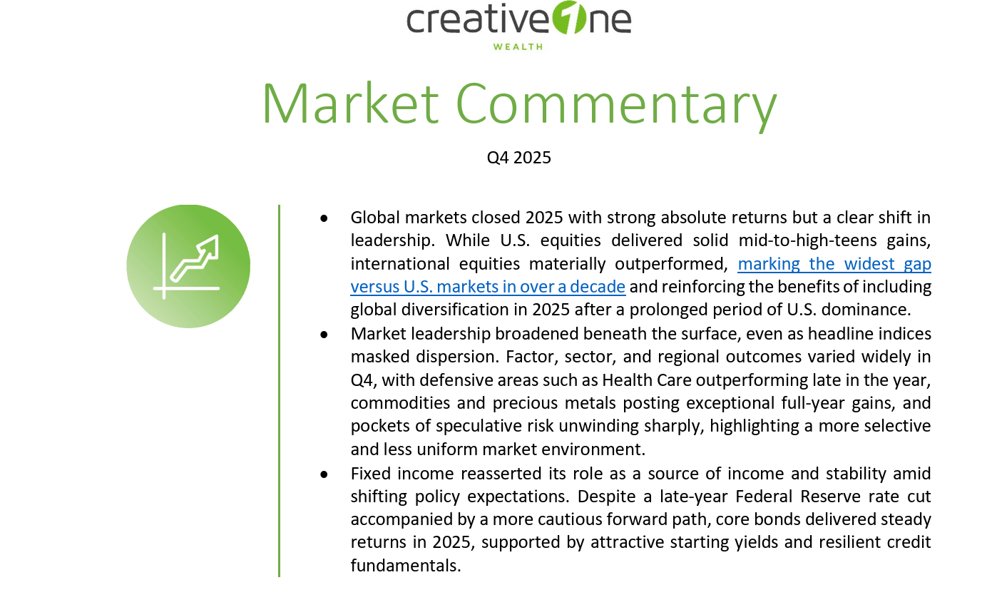 ‘Investment Counsel' refers to ongoing discretionary portfolio management services provided through CreativeOne Wealth, LLC.